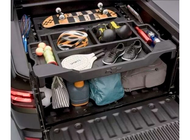 Este accesorio exclusivo patentado por GM proporciona una gran funcionalidad a la caja de carga, transformándola en un auténtico baúl. Compuesto por una gran bandeja y un tablero que permite colocarlo en seis posiciones diferentes según necesidad.